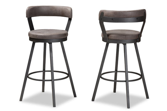 Baxton Studio Arcene Rustic and Industrial Anti... Baxton Studio Arcene Rustic and Industrial Antique Grey Fabric Swivel Bar Stool Set of 2