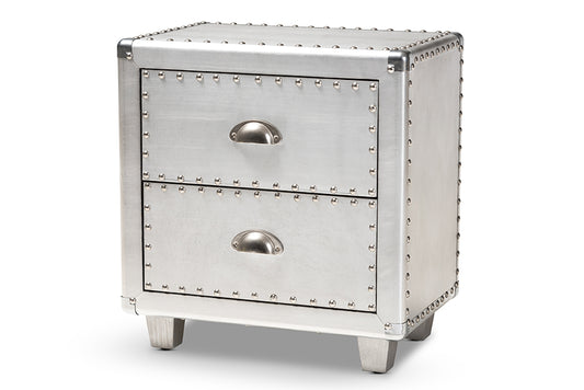 Baxton Studio Davet French Industrial Silver Me... Baxton Studio Davet French Industrial Silver Metal 2-Drawer Nightstand