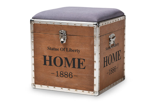 Baxton Studio Violetta Vintage Industrial Light... Baxton Studio Violetta Vintage Industrial Light Gray Fabric Upholstered Wood Storage Trunk Ottoman