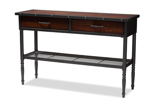 Baxton Studio Caribou Rustic Industrial Style O... Baxton Studio Caribou Rustic Industrial Style Oak Brown Finished Wood and Black Finished Metal Console Table