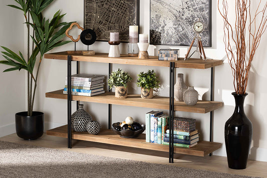 Baxton Studio Aldis Modern Industrial Walnut Br... Baxton Studio Aldis Modern Industrial Walnut Brown Finished Wood and Black Metal 3-Tier Display Shelf