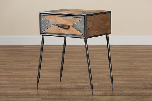 Baxton Studio Laurel Rustic Industrial Antique ... Baxton Studio Laurel Rustic Industrial Antique Grey Finished Metal and Whitewashed Oak Brown Finished Wood 1-Drawer Nightstand
