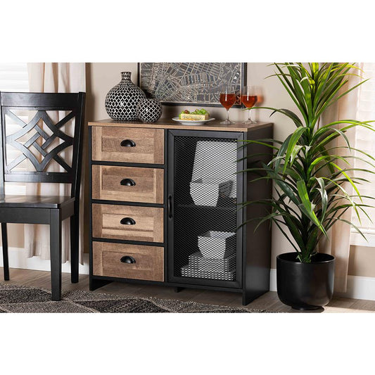 Baxton Studio Connell Modern and Contemporary I... Baxton Studio Connell Modern and Contemporary Industrial Two-Tone Natural Brown and Black Finished Wood and Black Metal Sideboard Buffet