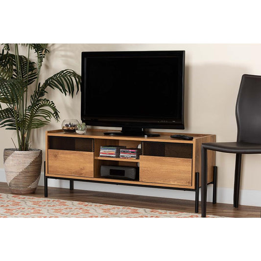 Baxton Studio Tasman Modern and Contemporary In... Baxton Studio Tasman Modern and Contemporary Industrial Natural Brown Finished Wood and Black Metal 2-Door TV Stand