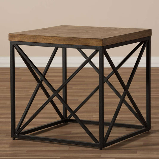 Baxton Studio Tasman Modern and Contemporary In... Baxton Studio Tasman Modern and Contemporary Industrial Natural Brown Finished Wood and Black Metal End Table
