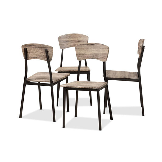 Baxton Studio Marcus Modern Industrial Oak Brow... Baxton Studio Marcus Modern Industrial Oak Brown Finished Wood and Black Metal 4-Piece Dining Chair Set