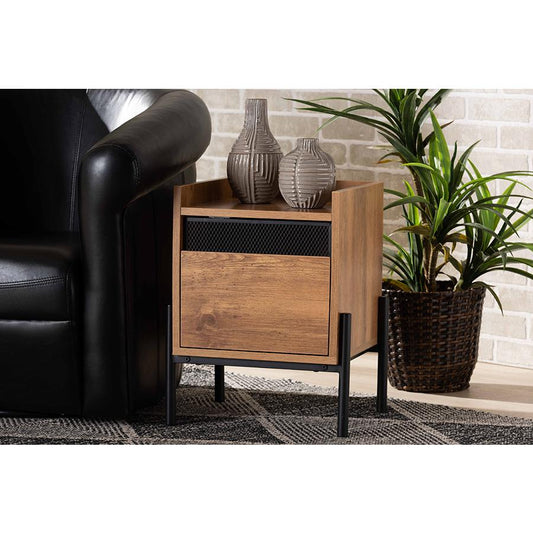 Baxton Studio Olinda Modern Industrial Oak Brow... Baxton Studio Olinda Modern Industrial Oak Brown Finished Wood and Black Metal 2-Drawer End Table