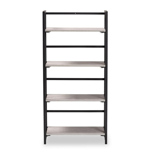Baxton Studio Lakota Modern Industrial Light Gr... Baxton Studio Lakota Modern Industrial Light Grey Finished Wood and Black Metal 4-Tier Display Shelf