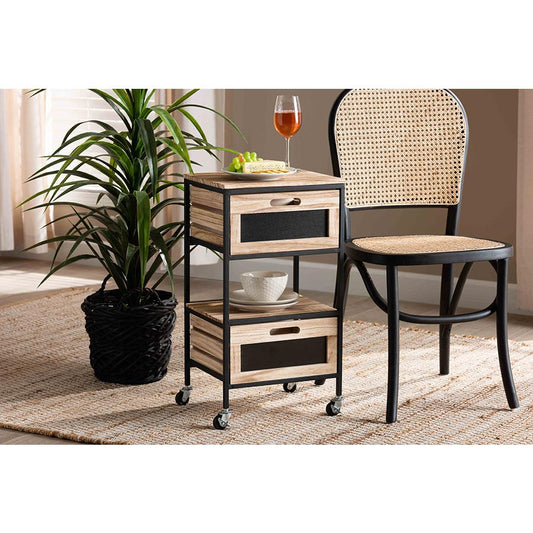 Baxton Studio Grant Vintage Rustic Industrial O... Baxton Studio Grant Vintage Rustic Industrial Oak Brown Finished Wood and Black Finished Metal 2-Drawer Kitchen Cart