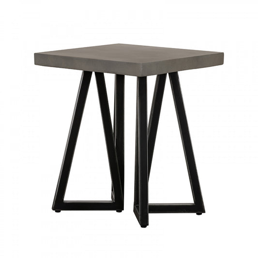 Gray Concrete and Black Metal Geo Industrial Sq... Gray Concrete and Black Metal Geo Industrial Square End Table By Homeroots