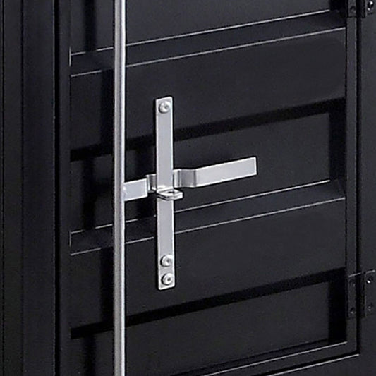 Industrial Style End Table With Sliding Door St... Industrial Style End Table With Sliding Door Storage Black By Benzara