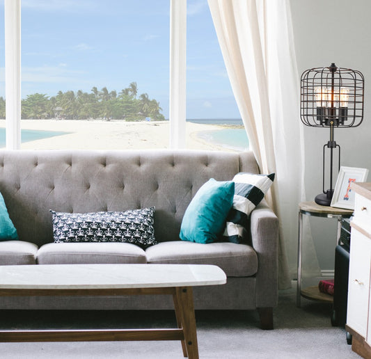 27" Black Metal Industrial Cage Design Three Li... 27" Black Metal Industrial Cage Design Three Light Table Lamp By Homeroots