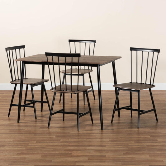Baxton Studio Nevan Modern Industrial Brown Woo... Baxton Studio Nevan Modern Industrial Brown Wood and Metal 5-Piece Dining Set