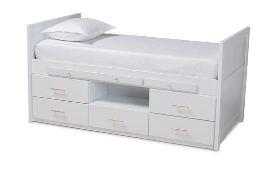 Baxton Studio Mirza Modern and Contemporary Whi... Baxton Studio Mirza Modern and Contemporary White Finished Wood 5-Drawer Twin Size Storage Bed with Pull-Out Desk