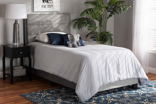 Baxton Studio Tamira Modern and Contemporary Gl... Baxton Studio Tamira Modern and Contemporary Glam Grey Velvet Fabric Upholstered Twin Size Panel Bed