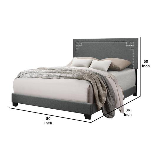 Fabric Eastern King Bed With Geometric Pattern ... Fabric Eastern King Bed With Geometric Pattern Nailhead Trims, Gray By Benzara