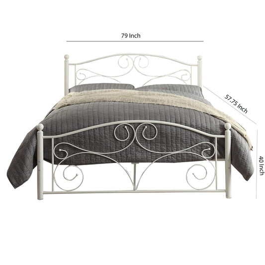 Metal Full Size Platform Bed With Scrollwork D... Metal Full Size Platform Bed With Scrollwork Details, White By Benzara