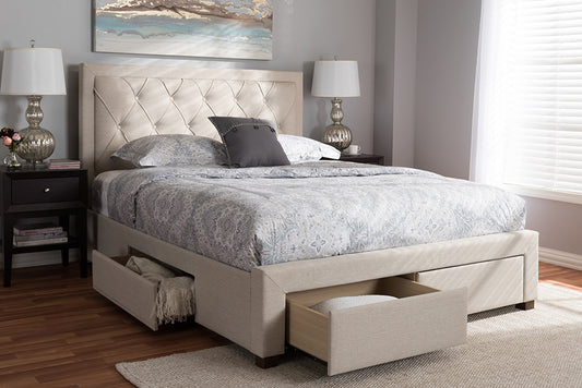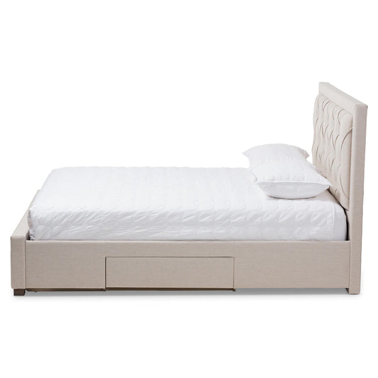 Baxton Studio Leni Modern and Contemporary Beig... Baxton Studio Leni Modern and Contemporary Beige Fabric Upholstered 4-Drawer Queen Size Platform Storage Bed Frame