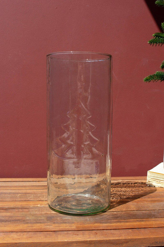 Clear Glass Cylinder With Embossed Christmas Tr... Clear Glass Cylinder With Embossed Christmas Tree By Kalalou