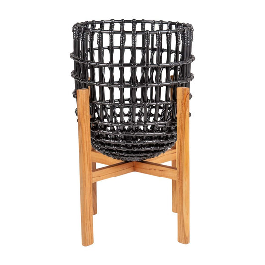 Haven Teak Iron Rattan Basket, 12" Round by Jeffan Haven Teak Iron Rattan Basket, 12" Round by Jeffan