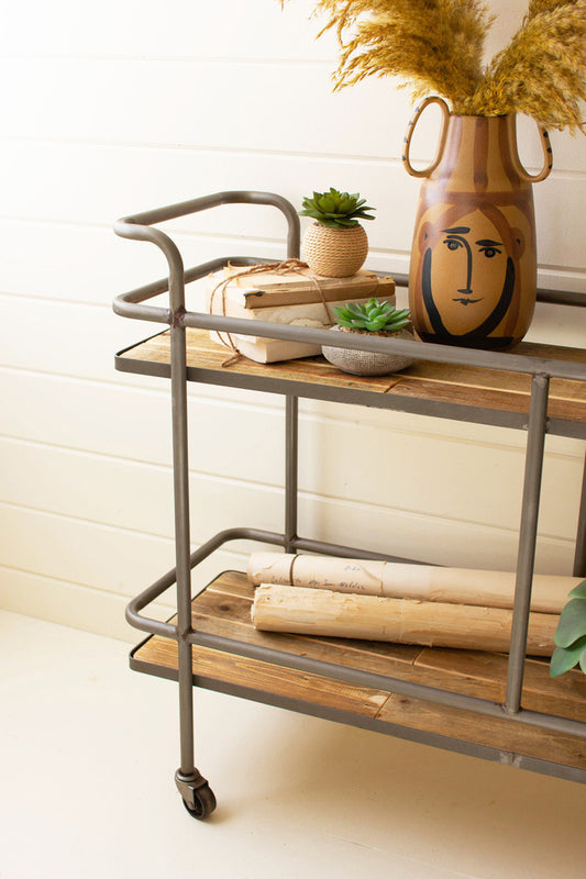 Rolling Wood And Iron Cart By Kalalou Rolling Wood And Iron Cart By Kalalou