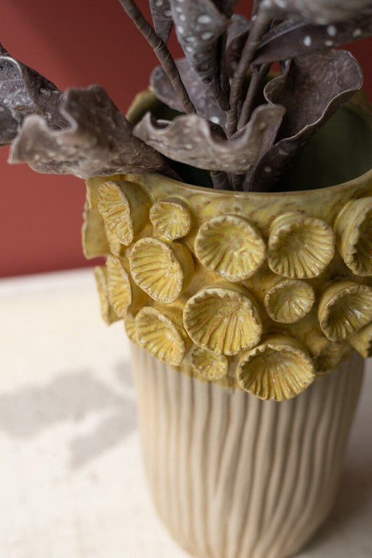 Ceramic Vase With Yellow Flower Detail - Large ... Ceramic Vase With Yellow Flower Detail - Large By Kalalou
