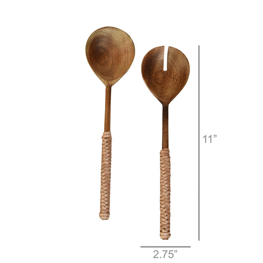 Burke Salad Servers, Wood & Natural Leather Set... Burke Salad Servers, Wood & Natural Leather Set Of 2 By HomArt