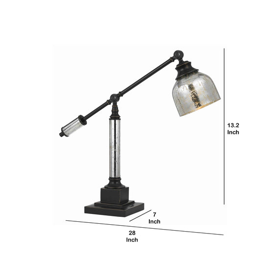 60 Watt Metal Body Table Lamp With Dome Glass S... 60 Watt Metal Body Table Lamp With Dome Glass Shade, Black And Silver By Benzara