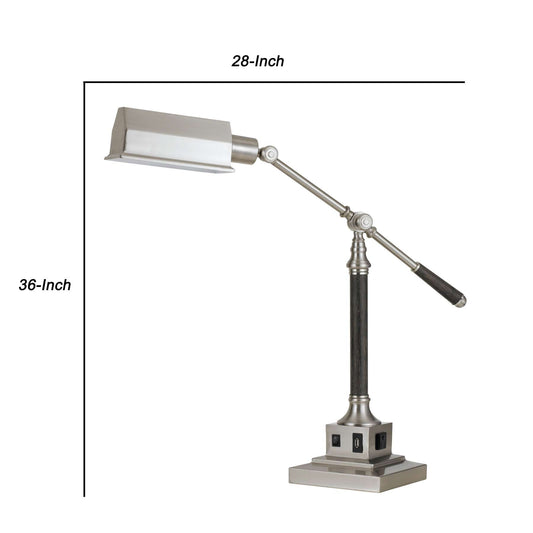 Metal Rectangular Desk Lamp With Adjustable Pol... Metal Rectangular Desk Lamp With Adjustable Pole, Silver By Benzara