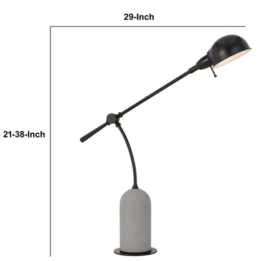 38" Metal Arm Desk Lamp With Cement Base, Black... 38" Metal Arm Desk Lamp With Cement Base, Black And White By Benzara