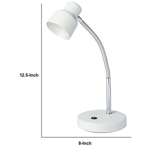 Table Lamp With Adjustable Goose Neck And Shade... Table Lamp With Adjustable Goose Neck And Shade, White By Benzara