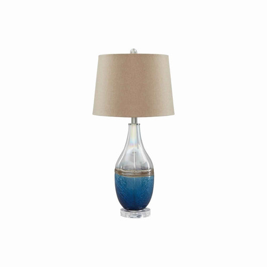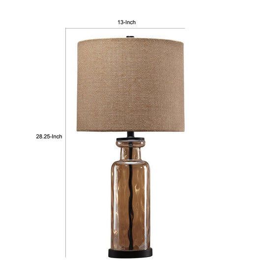 Bellied Glass Table Lamp With Fabric Drum Shade... Bellied Glass Table Lamp With Fabric Drum Shade Beige And Clear By Benzara