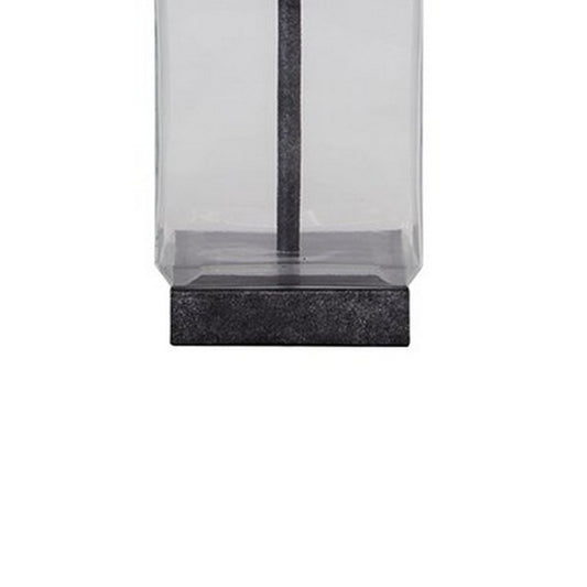 Glass And Metal Base Table Lamp With Square Sha... Glass And Metal Base Table Lamp With Square Shade Set Of 2 Clear And Gray By Benzara