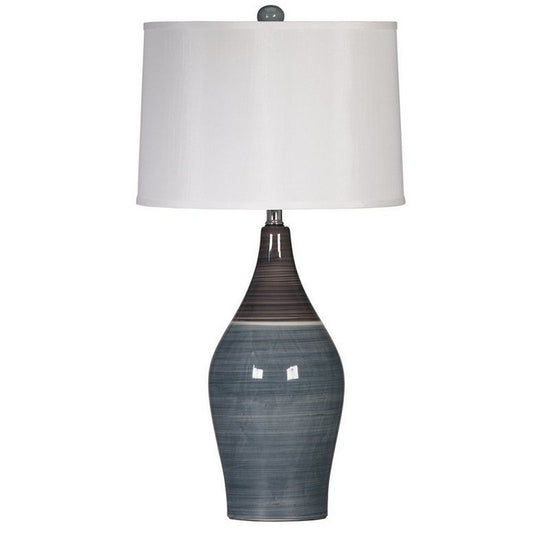 Pot Bellied Ceramic Table Lamp With Brushed Det... Pot Bellied Ceramic Table Lamp With Brushed DetailsSet Of 2 Gray And White By Benzara