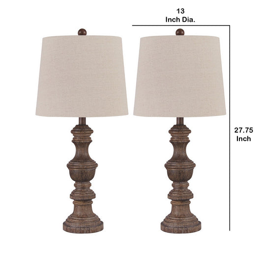Polyresin Table Lamp With Turned Base Set Of 2 ... Polyresin Table Lamp With Turned Base Set Of 2 Brown And Off White By Benzara
