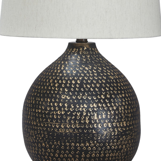 Pot Bellied Base Metal Table Lamp With Dotted P... Pot Bellied Base Metal Table Lamp With Dotted Pattern Black By Benzara