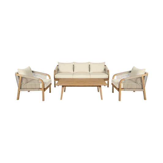 Cypress Outdoor Patio 4 Piece Conversation Set ... Cypress Outdoor Patio 4 Piece Conversation Set in Blonde Eucalyptus Wood and Light Gray Rope with Ivory Olefin Cushions By Armen Living