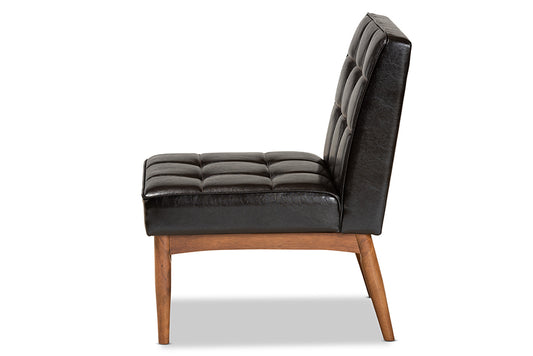 Baxton Studio Sanford Mid-Century Modern Dark B... Baxton Studio Sanford Mid-Century Modern Dark Brown Faux Leather Upholstered and Walnut Brown Finished Wood Dining Chair