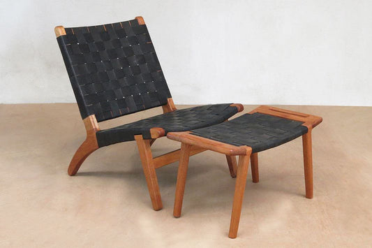 Masaya Lounge Chair - Black Leather And Teak Masaya Lounge Chair - Black Leather And Teak