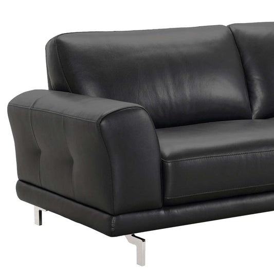 Everly Contemporary Sofa in Genuine Black Leath... Everly Contemporary Sofa in Genuine Black Leather with Brushed Stainless Steel Legs By Armen Living