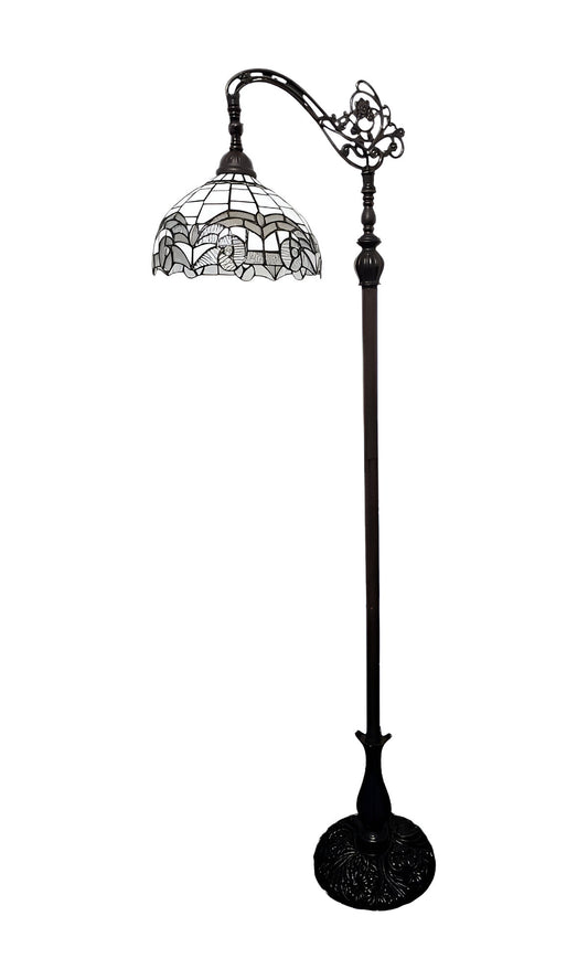 Espresso Torchiere Floor Lamp With Green And Wh... Espresso Torchiere Floor Lamp With Green And White Flowers Glass Dome Shade By Homeroots