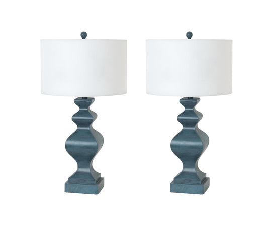 Set of Two Distressed Teal Table Lamps With Whi... Set of Two Distressed Teal Table Lamps With White Drum Shade By Homeroots