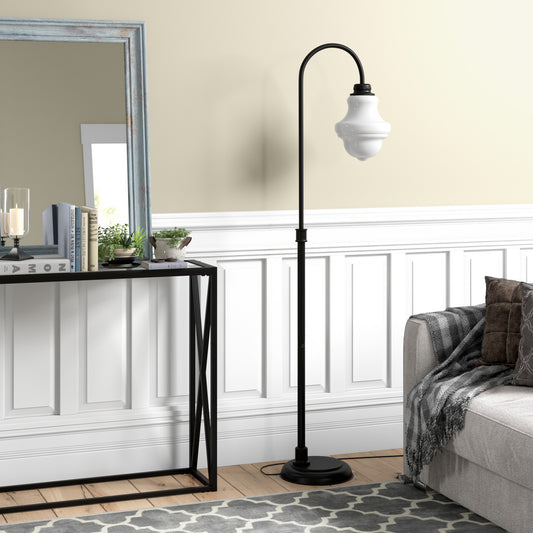 Black Arched Floor Lamp With White Frosted Glas... Black Arched Floor Lamp With White Frosted Glass Globe Shade By Homeroots
