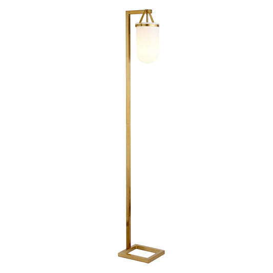 Brass Reading Floor Lamp With White Frosted Gla... Brass Reading Floor Lamp With White Frosted Glass Globe Shade By Homeroots
