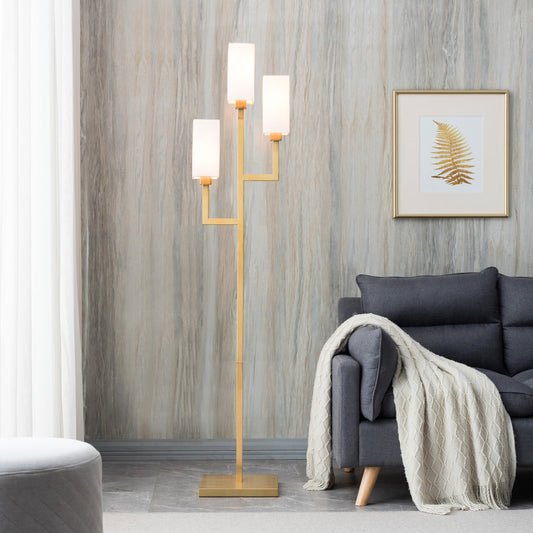 Brass Three Light Torchiere Floor Lamp With Whi... Brass Three Light Torchiere Floor Lamp With White Frosted Glass Rectangular Shade By Homeroots