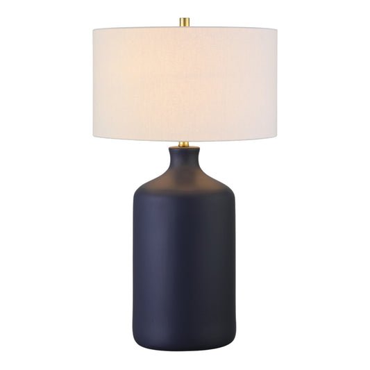 Navy Blue Ceramic Table Lamp With White Drum Sh... Navy Blue Ceramic Table Lamp With White Drum Shade By Homeroots