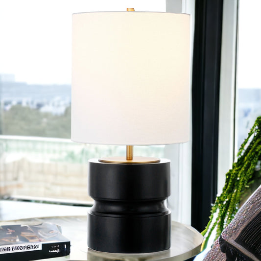 Black and Gold Metal Table Lamp With White Drum... Black and Gold Metal Table Lamp With White Drum Shade By Homeroots