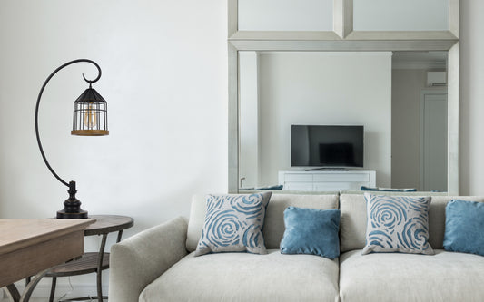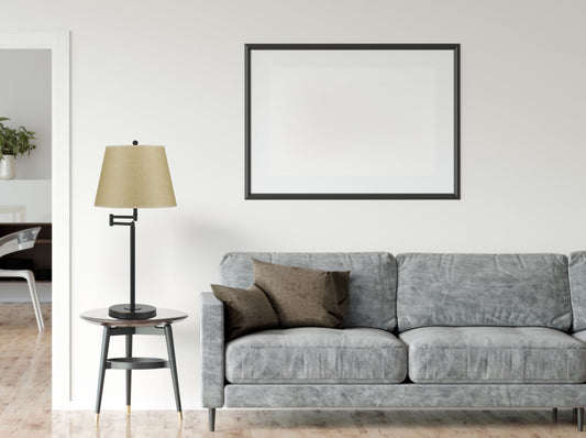 Gray Metal Geometric Table Lamp With Off White ... Gray Metal Geometric Table Lamp With Off White Empire Shade By Homeroots