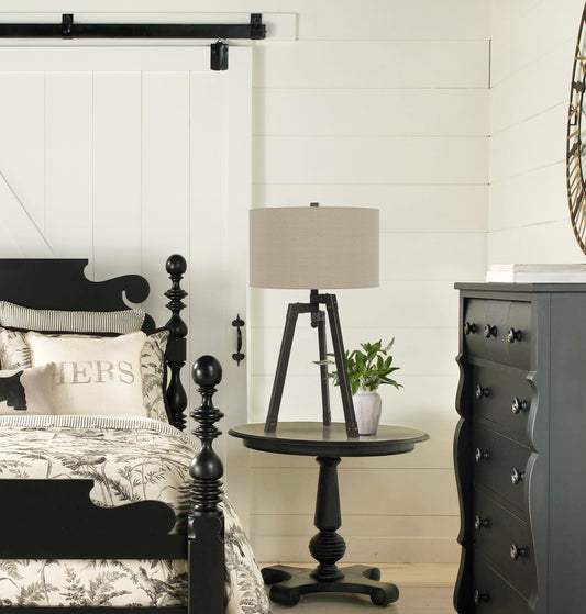 Charcoal Metal Tripod Table Lamp With Tan Drum ... Charcoal Metal Tripod Table Lamp With Tan Drum Shade By Homeroots