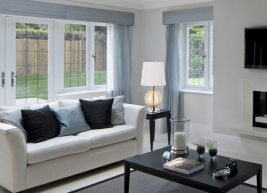 Clear Metal Round Table Lamp With White Shade B... Clear Metal Round Table Lamp With White Shade By Homeroots